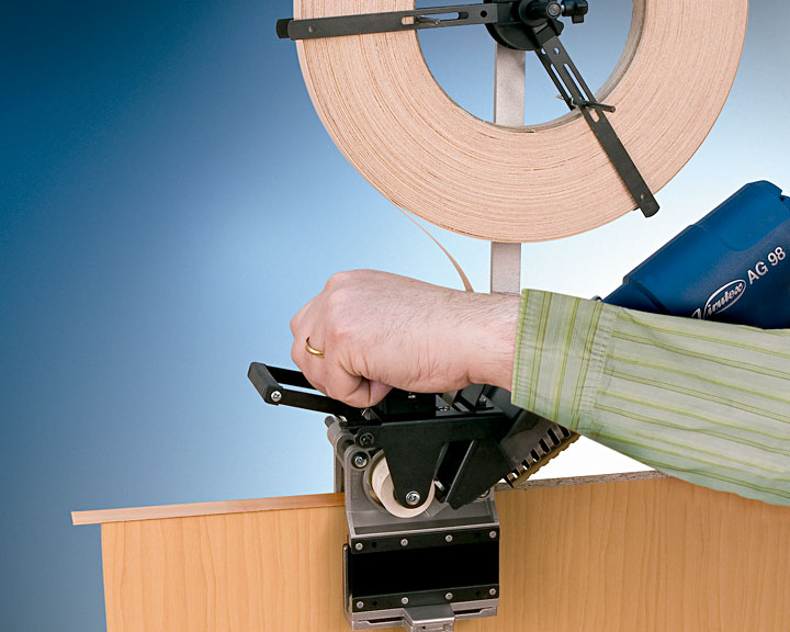 Per la bordatura di bordi preincollati in P.V.C., poliestere, melaminico e legno. Consente la bordatura di parti circolari o sagomate. Il suo speciale disegno con ganasce regolabili consente di eseguire il lavoro con grande precisione e stabilità.